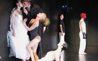 Ujjgyakorlat Samuel Beckett és Jean Genet szövegeire, ahol szabadon játszunk a zene, a mozgás és a szöveg arányaival. A folyamatos változásokon keresztül egyfajta tréningnek, gyakorlatnak tekintjük, amely során egyre közelebb kerülünk ahhoz a nyelvhez, kifejezési rendszerhez, amely a vizualitást, a