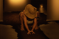 lehajtott fejjel, hatalmas, arcát teljesen elfedő kalapban), ez