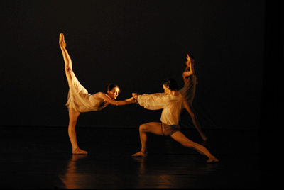 Hatalmas, bűvösen bevilágított falelemek közül, mint árnyas erdőből bukkan elő Fodor Zoltán Boccherini-szonáták című, tízszereplős alkotásának előadógárdája. A falak hamarosan sorra felemelkednek, hogy a játék végén, azt hangsúlyosan zárva, visszatérjenek a térbe. Fodor csipkefinomságúra komponált munkája régmúlt korok hangulatát idézi: nem ígér sokat, "apró érzelmeket, pici örömöket" csupán, s tartja is szavát. A hosszan indázó koreográfia tetszetős és avítt, komoly kompozíciós érzékről tanúskodik, de szerzője nem ambicionál többet a szépség megjelenítésénél. Nem kevés az se, de amit látunk, nem ragad meg jobban, mint egy mutatós dísztárgy, melyet kiváló anyagból, tehetséggel faragtak.