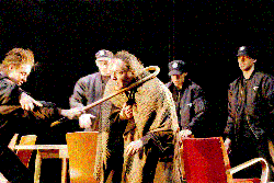 a Holocaust 60. évfordulója alkalmából készült, és Markó ismert társadalmi érzékenységének, ha tetszik: politizáló-aktualizáló képességének újabb iskolapéldája. Mert nem elég, hogy �emléket állít" - a fiaikat már-már szentimentális érzelmességgel imádó zsidó anyáknak (I. tétel). A címszereplô (Loósz Krisztina) fanatikus odaadással kényezteti "szerelmetes" fiát (Nyári Gábor), akit náci pribékek ragadnak el tôle (elviszik, halálba kergetik), az anyát pedig a tiszt (Markó Iván) megerôszakolja. Késôbb a fogolytáborban kislányaival együtt látjuk ôt újra. Megható látvány hármuk törékeny alakja, és a szeretet, mely a halál küszöbén is megmaradt (II. tétel). Mintha ezt irígyelné el tôlük a foglyok ôre (Markó Iván), aki az anyát elôbb kicsi gyermekeitôl is megfosztja, egyikük babáját pedig a szeme láttára széttépi.