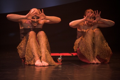 A baljósan szikár és fekete humorú bohócpáros valóban képes megragadni, és hosszan megtartani a nézői figyelmet, és bár ötletességben és provokációban nincs hiány az előadásban, a végtelenségig mégsem marad érdekes. A talán a félidőnél elhelyezett álszünet, amelyben a nézőtéri fény felgyulladása mellett szociális tevékenységre szólítják fel a nézőket, például a felesleges lelemények közé tartozik, mert első elsülésénél sem reagálnak érdemben a nézők, második (igaz, rövidebb) bevetése pedig már üres önismétlés. A csíny persze elsősorban azért marad terméketlen, mert a színház a színházban forma nem valósul meg az előadásban. Holott az előadás a kelleténél többet utal a színt játszásra annál, mintsem az magyarázat nélkül maradhatna. A balett és az opera formátumának és formáltságának paródiája időnként beszivárog az estébe, de nincs olyan karakteresen jelen, hogy ez váljon az előadás fő vonásává. A színház eltűnik, legfeljebb a két véglény olykor valóban humoros, máskor kényszeredett jeleneteiben utalnak rá néha. A teatralitás talán éppen a Shakespeare drámájában is jelenlévő képmutatásra és nemi szerepcserére utal.
