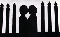 asszony képe időnként kettéválik. A két test hol összefonódik, hol