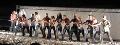 és a mozgás. A krisztusi szenvedéstörténet a csoport, a „tömeg” állandó sodrásából,