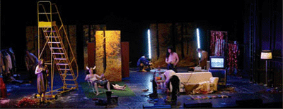 A Forced Entertainment Bloody Mess című előadását nem lehet sem leírni, sem beskatulyázni. A színházi társulat húszéves pályafutásának betetőzése - tíz előadóra írott nagy szabású mű, melyben különféle, egymástól független karakterek, történetek és előadások találkozása és ütköztetése meglepő és új logikát szül. Először is a színészek elárulják a nézőknek, hogy mit szeretnének, hogyan lássák őket az előadás alatt. A konfliktus adott - versengés, ellentmondások és összeférhetetlenség uralkodik el a színpadon. Szerencsére nem kell attól tartani, hogy teljes kudarcba fullad az előadás, mivel Tim Etchells rendező olyan elemeket sző a kaotikus egészbe, melytől a "show" egy intelligens, fekete humorral és meglepő érzékenységgel átitatott, a zsenialitás határát súroló darabbá lényegül át.