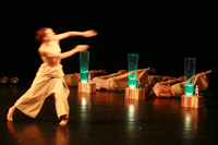 Táncban megszólalni lehet, s erre számtalan a példa. Táncban megszólalni azonban nem úgy megy, hogy a táncost instruáljuk, hogy egy számunkra érthetetlen nyelven ezt, vagy azt mondja, suttogja, kiabálja. Beszélni, a színpadon beszélni ugyanúgy, hosszasan tanulni szoktak, akárcsak táncolni. Beszéd-, hangképzés-, vagy színészmesterség-órán. Ezt Batten Bland látszólag nem tudja. Jean Philippe Barrios muzsikája gyakran teljességgel elnyomja a gyengécske, civilen kongó hangokat, a "sziákat", "hellókat", s a bővebb közlendőket. Diákszínjátszóköri hangulatba fullad ez a se füle, se farka produkció, melynek tartalmából - értéket azért nem mondanék - minden egyes megszólalás elvesz.