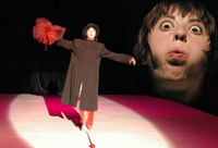 Gelsomina Fellini Országúton című filmjének főhősnője. Az ő alakját idézi meg az előadás. Az esendő, helyét kereső, önmagát foglalkozásából fakadóan folyvást produkálni kénytelen mutatványosét, aki egyfelől szereplés- és megmutatkozásvágytól hajtott bohóc, másfelől az énszörnyei, démonai, tüneményei világában létező magányos alak. Szeretetre, gyengédségre, odafigyelésre, kommunikációra vágyik, s persze arra, hogy produkciójával örömet szerezzen a nagyérdeműnek.
