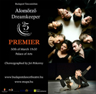 A Budapest Táncszínház legújabb előadásában Jiří Pokornyval, az NDT2 alkotó-művészével dolgozik együtt a társulat. Az izgalmas közös munka során Földi Béla művészeivel az álmok és a valóság világát mutatják be. Az 1991 óta működő Budapest Táncszínház Magyarország egyik vezető modern táncegyüttese. Az alapító, Földi Béla vezetésével a társulat számos elismert magyar és külföldi koreográfussal dolgozott együtt az elmúlt 25 évben, többek között: Raza Hammadi, Amir Kolben, Krisztina de Châtel, Neel Verdoorn, Joseph Tmim, Séan Curran, Dali Touiti, Vaszilij Sulich, Egerházi Attila, Frenák Pál, Juronics Tamás, Mándy Ildikó, Berger Gyula.