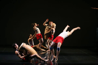 Öt izgága tornász játszik nekünk (Ladányi Andrea,Kozmér Alexandra, Bajári Levente, Csonka Roland, Kerényi Miklós Dávid): ezt a benyomást keltik a táncosok piros torna-sortjukban, és fehér trikójukban, s e hatásra még ráerősít a pihenőül szolgáló tornatermi kispad is. Arról nem is beszélve, hogy a koreográfiában gyakoriak a tornászmozdulatok (Csonka Rolandtól leginkább). A hatodik táncos (Lőrinc Katalin) majdnem végig egy helyben mozgó szoborként tündököl aranyló bikinijében egy állványra emelt olajoshordó tetején. Hol istennő, hol pedig egy bizonytalan ex-díva érzetét keltve. És jelen van Pusztai Dávid: a klasszikus ütőhangszerektől a PVC csövön és lábasokon át a vízzel telt pohárig mindenen ritmust csiholó zeneművész.