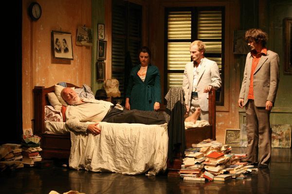Ragyogó kombinációja ez a darab a színész, a táncos és a zenész és a látványtervező(díszlet, fény)együttes, egységes egészet alkotó, de szólórészekként is helytálló közös munkájának. Festmények hiányát láthatjuk a falon lévő képnyomokból, ugyanakkor az az érzésünk támadhat, mintha egy finoman kidolgozott realista (tartalmát tekintve inkább szürrealista) festmény elevenedett volna meg előttünk, ami egyszer át is lényegül állóképpé: a földön hasaló Sam fején az öreg tapos, rajta az ifjú pár, lábán pedig a díva ül.