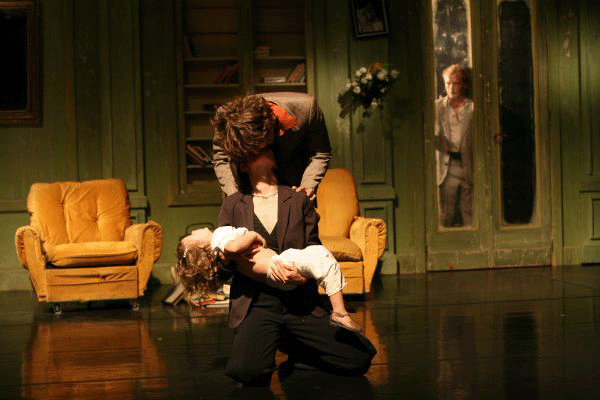 Gabriela Carizzo, Samuel Lefeuvre, Franck Chartier, a három táncos-koreográfus mozgás és gesztusnyelve tökéletesen tükrözi az élettörténeten túl az általuk megformált személyiségek jellegzetességeit is. Lassan minden világos: az ismétlődő mozdulatsorok kibontanak egy-egy különös karaktert: a folyamatosan egyensúlyát kereső, lábra állással küzdő férj (Frank Chartier), ki csak az öccsével való "játékokban" képes erős, magabiztos férfinek tűnni, s miközben fivére hátán "hullám-lovagol", bárgyú mosollyal tetszeleg a győztes szerepében. Ugyanakkor így képes egy kis időre megfeledkezni arról, hogy életét megkeseríti a gyermekét megrögzötten gyászoló felesége (Gabriela Carizzo), aki képtelen a jelenben élni, így kényszeresen idézi fel lánya emlékét, ami alattomosan telepszik rá az egész család hangulatára. A nő üres, megőrült tekintete és kényszeres mozgása csak akkor szabadul fel és válik harmonikussá, mikor a fiatal pár szerelmét idézi, s a kislány mint valóban a szerelem gyümölcse vidáman simul a szülők karjaiba.