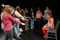Olyan színházban voltam, ahol minden erőltetés nélkül, kötetlenül és derűsen már a büfés is része a „szet”-nek, sőt már én is, amikor megveszem a kávémat előadás előtt, mert szinte észre sem veszem, ahogy elvegyültek beszélgetni a köröttem is várakozó (jelen pillanatban 13 éves) nézők között olyan felnőttek, akik néhány perc múlva majd a színpadon állnak.