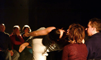 Kapásból talán már az idejét se tudjuk, mikor láthattunk annyira "táncos" előadást Szabó Rékától, mint amilyen a Tünet Együttes új bemutatója, a Nincs ott semmi. Lehetne hosszas eszmefuttatást írni az utóbbi időben kissé háttérbe szorult mozgáskomponista véna, érzék, hajlam, tehetség újbóli felmutatásáról, az ellenpontozásról. Arról, hogy Szabó Réka egy lebilincselő előadás keretében megmutatta, hogy bár izgalmasan messze kalandozott a kifejezés vizein, azért ő velejéig táncalkotó (is) maradt.