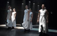 Démonok lépnek a fehér porpódiumra, revüjüket az emberi lélek sötétje és fényessége közti skálán játsszák. Az alkotó visszaszámol, a színek végül szürkévé olvadnak. A sorvégi nulla kerekségével megszületik a bőr alatti lényháború indítója és elszenvedője: az ember. A nőiség hét szólóból álló vallomásszínháza után Gergye Krisztián a férfi, sokkal inkább az ember hétszólamú küzdelemszimfóniáját énekelte meg.