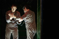 Kimunkált játék zajlik a színpadon a Corpo Grupo elôadásában, megingás nélkül, mert nincs az a fékevesztett pörgés, ami után a táncosok egytôl-egyig ne stabilan indítanának új irányba új ritmikát és mozgássort. Magabiztos könnyedséggel, mint az egyensúly zsonglôrei. Nincs habozás, toporgás, félrelépés és megingás: minden bonyolult mozdulat épp addig tart, ameddig a táncosok akarják, és máris új felfedezésekre indulhatnak.